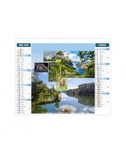 Calendrier publicitaire 6 feuillets 2026 avec planning de 12 mois illustré sur le thème des plus grands fleuves d'Europe. Découvrez au cours de ce calendrier le Danube, le Rhin, le Rhône, le Tage et la Seine. Des mosaïque de photos vous présentent la richesse de ce milieu aquatique et son atout patrimonial. Photographies: Adobe stock photos - Hemis - Bios - Naturangency- Unsplash. Ce calendrier se replie pour la mise sous pli. Ce calendrier existe en 2 formats XXL format 474 x 700 mm et SMALL format 330 x 470 mm. 2 choix d'impression 1 couleur ou quadri. Ce calendrier se repli pour la mise sous pli. Prix sur devis.
