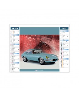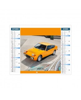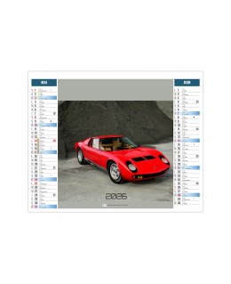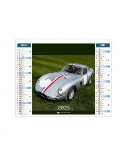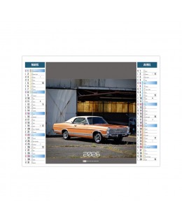Calendrier publicitaire 6 feuillets 2026 avec planning de 12 mois illustré de 6 photos de voitures des années 60-76, période vintage. Ce calendrier s'adresse à tous les passionnés de véhicules anciens. Credit photographique: Xavier de Nombel- Daniel Denis. Ce calendrier se plie pour la mise sous pli. Quantité minimum à partir de 25 exemplaires. 2 Possibilités au choix pour le format XXL 474 x 700 mm ou Small 330 x 470 mm. Impression au choix 1 couleur ou quadri. Prix sur devis.