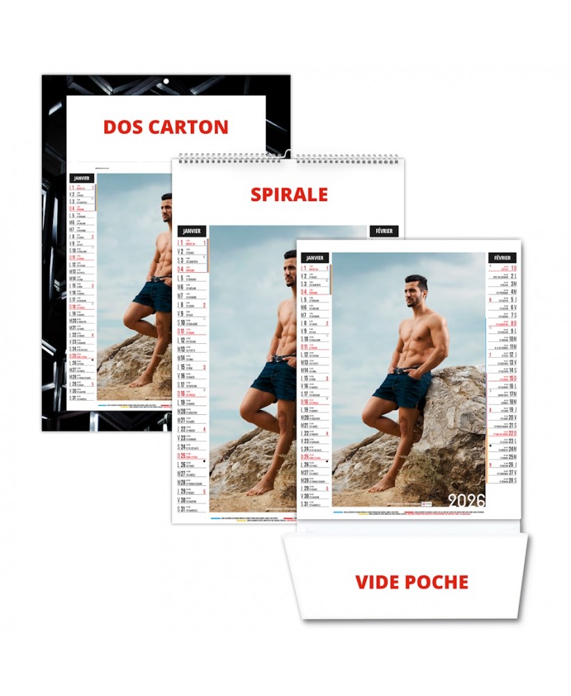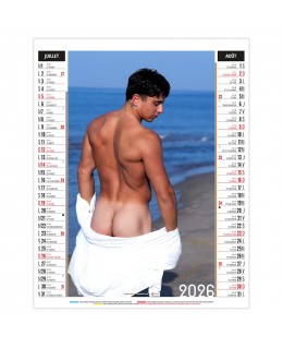 Calendrier 2026 publicitaire 6 feuillets illustré de 6 photos soft d'hommes dénudés. Ce calendrier est décliné en dos carton, dos vide poche et calendrier spirale. Photos: Adobe Stockphotos - Malestockphoto.com. Quantité minimum à partir de 25 exemplaires. Impression quadri. Prix sur devis